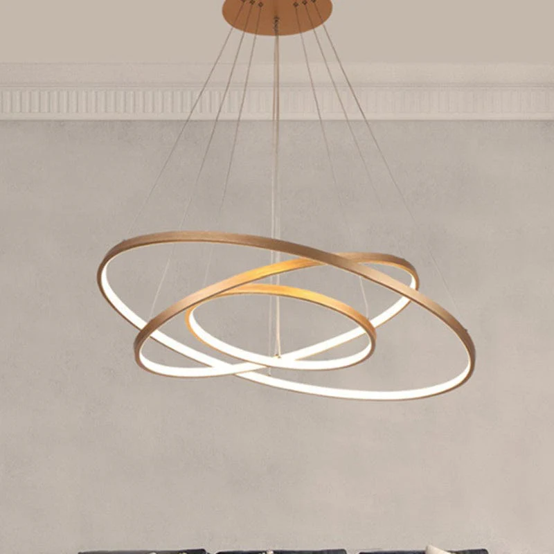 Designed for spaces that demand both functionality and style, the Gold Ring Pendant Lamp integrates high-quality LED technology, providing bright, evenly distributed light while minimizing energy consumption. Its layered ring structure creates a stunning floating effect, making it ideal for large living rooms, dining areas, hotel lobbies, showrooms, and upscale offices.
