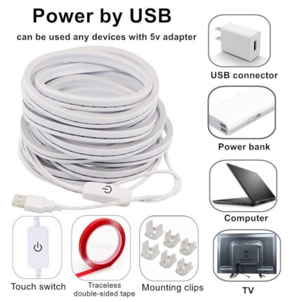With 60 LEDs per meter and a power rating of 5 watts per meter, it offers energy efficiency without compromising brightness. The DC 12V input ensures safe, low-voltage operation, making it a reliable choice for long-term use.